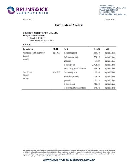 สารแซนโทนผ่านมาตรฐานจากอเมริกา