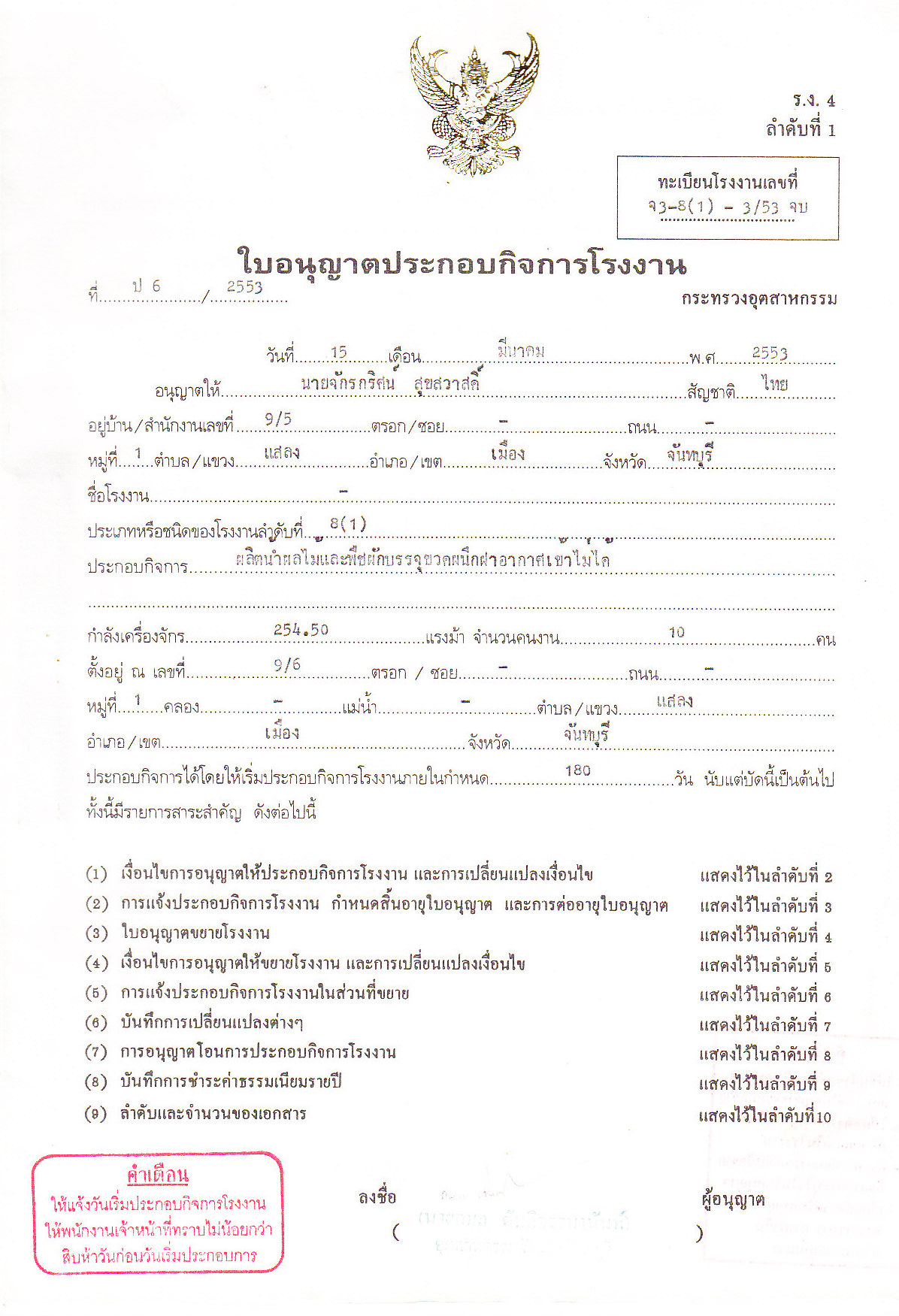 หนังสือรับรองจากสำงานคณะกรรมการอาหารและยา (อย.)
