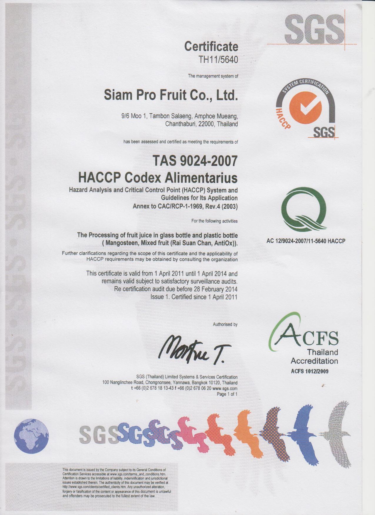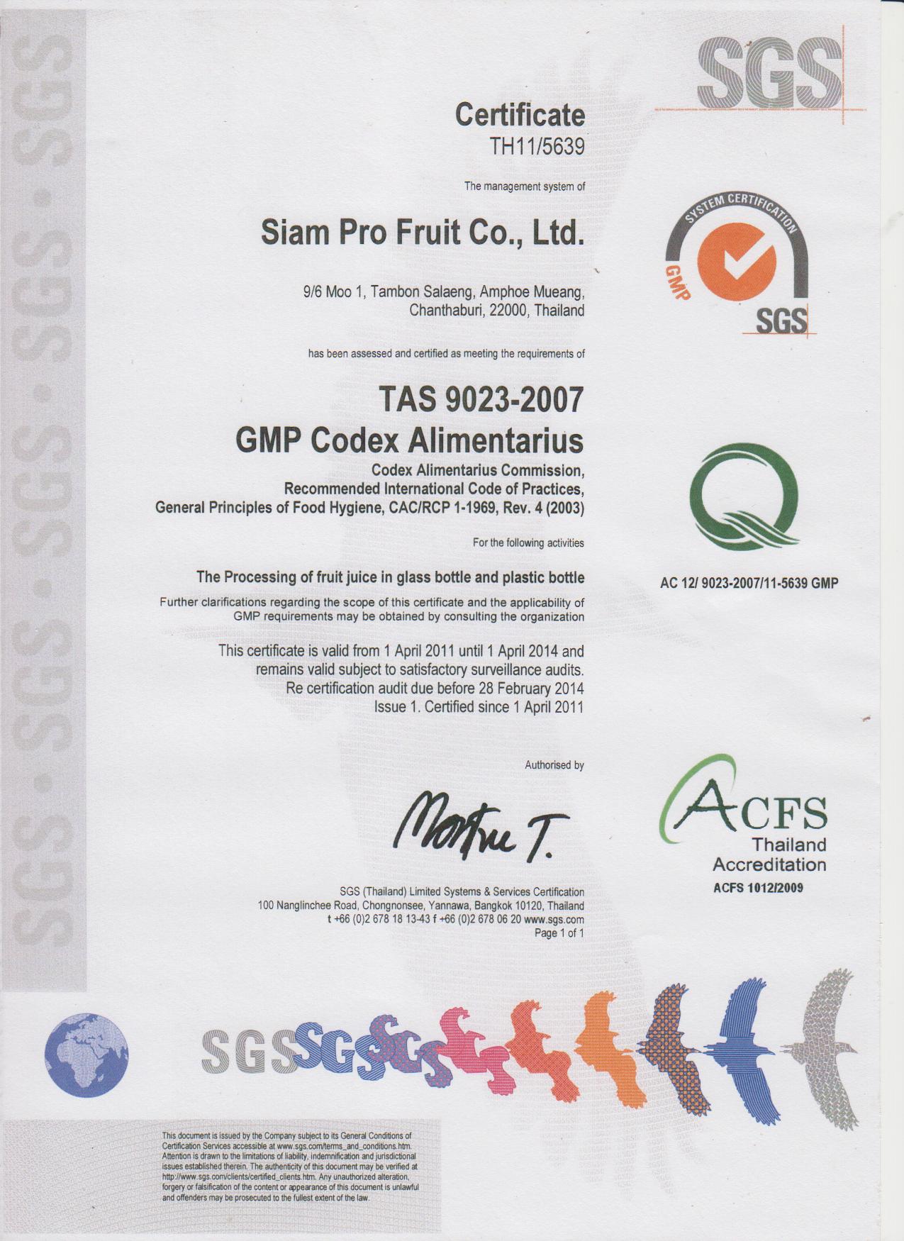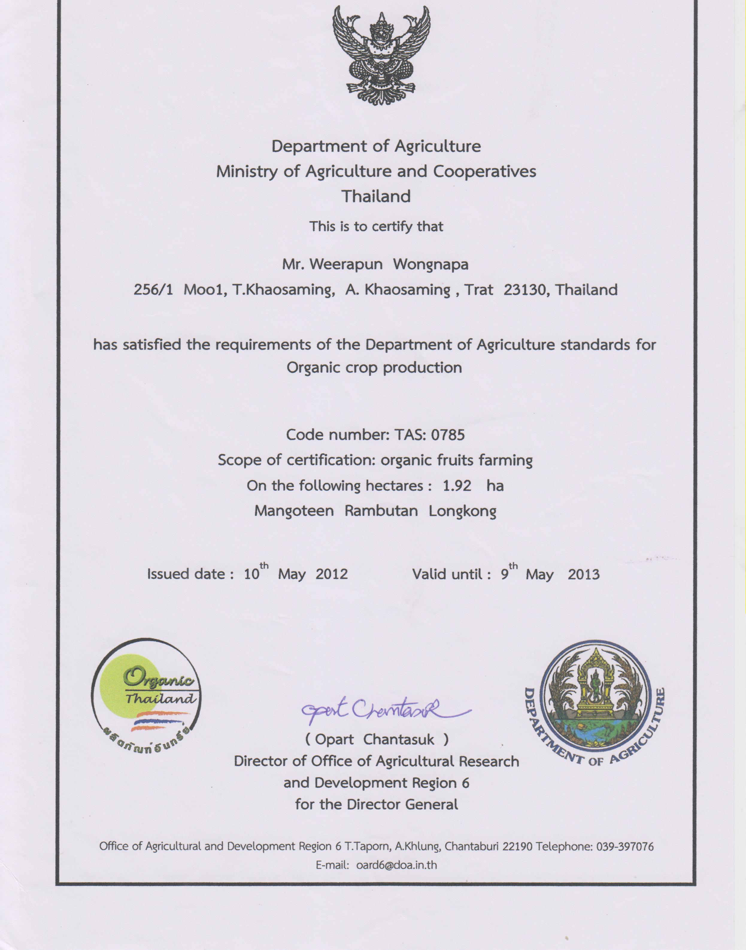 ใบรับรองโรงงานออร์แกนิกส์ฟูด ปลอดสารพิษ จากกระทรวงสาธารณสุข